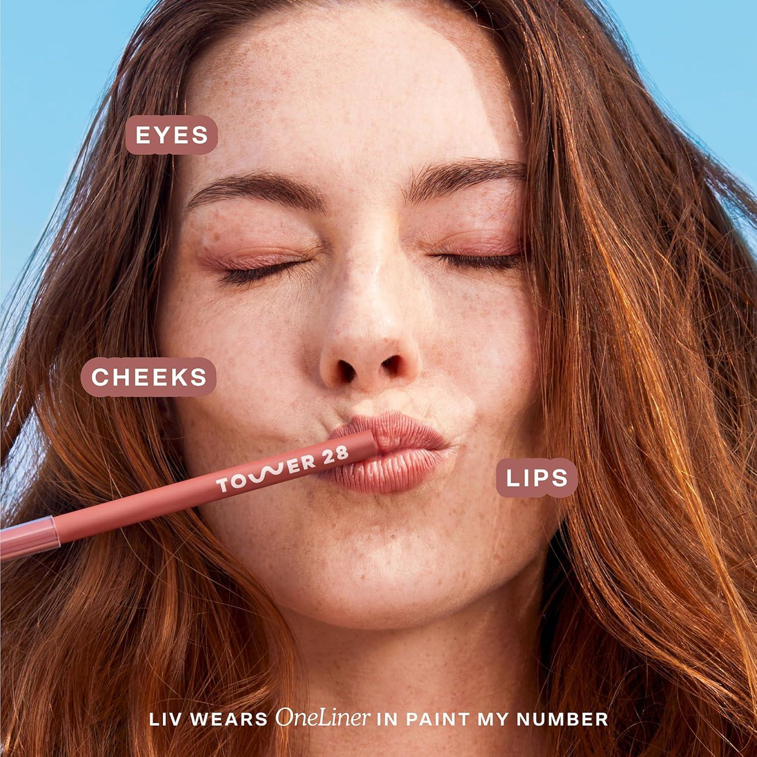 Tower 28 OneLiner Creamy Lip Liner Pencil – Defines Lips, Prevents Feathering, Doubles as Eye Pencil – Vegan & Sensitive Skin Safe – Fill Me In Rosy Nude Lip Liner(Paint My Number Muted Mauve)